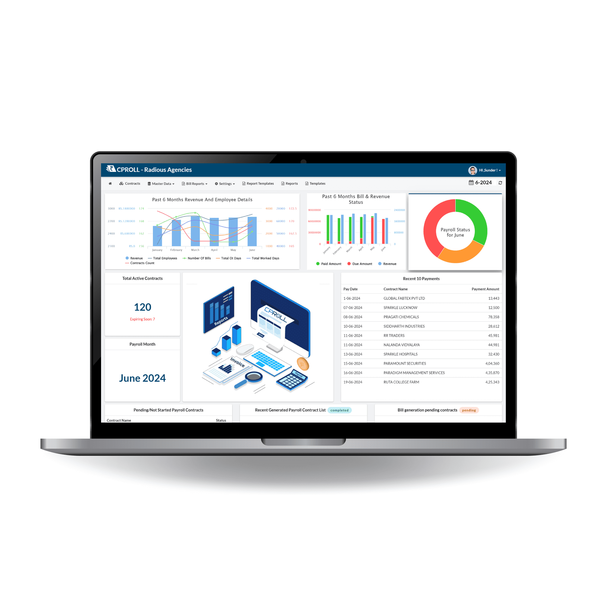 CPROLL is an all-in-one payroll management solution designed to streamline the handling of contracts, payroll, bills, invoices, wagesheets and revenue tracking. This intuitive software enhances business efficiency of organization, making it easier to manage payroll operations and maintain a structured workflow.